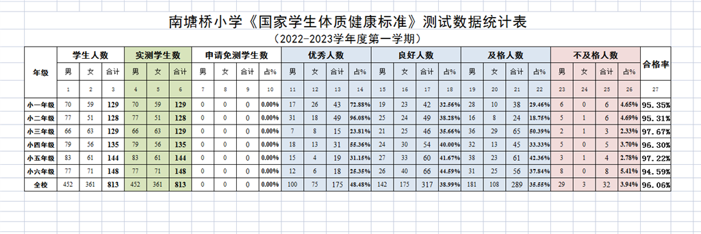 2022年度江苏省常州市经开区南塘桥小学学生体质健康、近视率公示