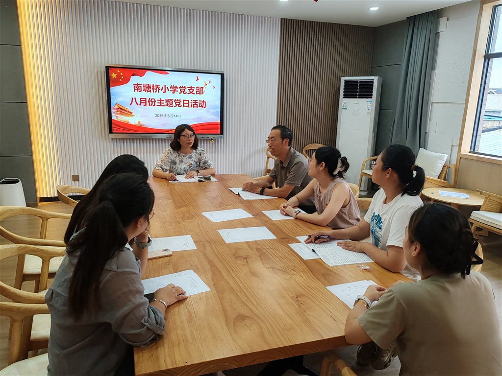 2025年8月14日,南塘桥小学党支部举行了八月份主题党日活动,本次活动由党支部副书记陆静主持,全体党员教师共同参与。