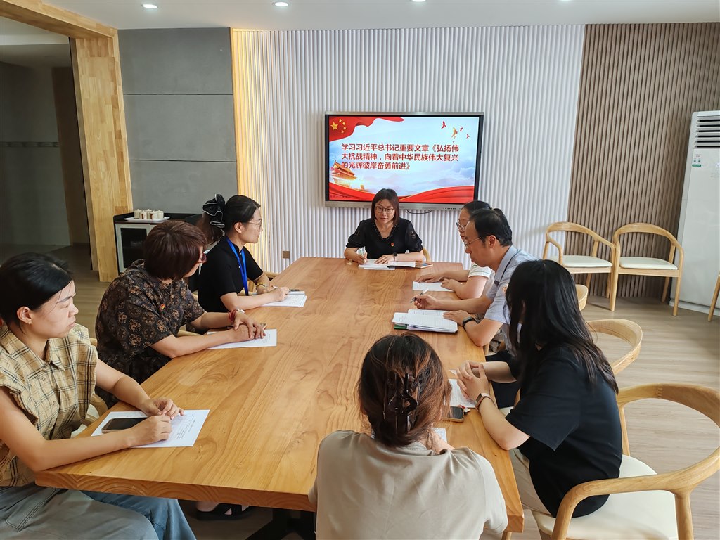 活动伊始,全体党员集中学习了习近平总书记重要文章《弘扬伟大抗战精神,向着中华民族伟大复兴的光辉彼岸奋勇前进》。大家通过原文学习、要点提炼和交流发言等形式,深刻领会伟大抗战精神的丰富内涵和时代价值。