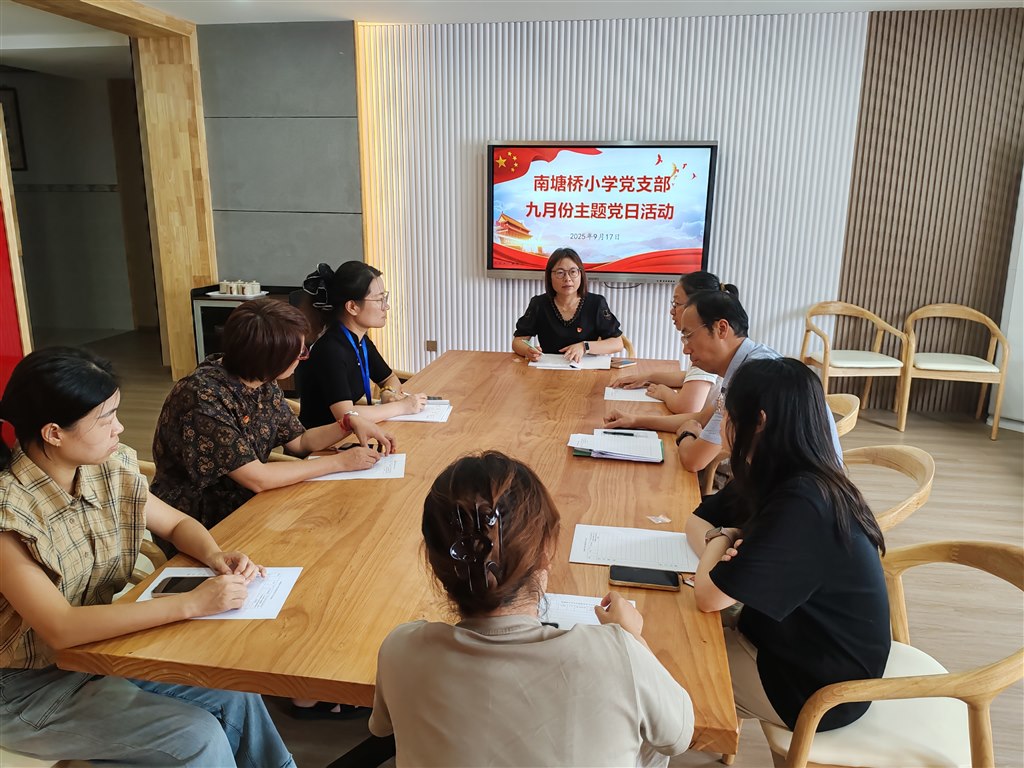为深入学习贯彻习近平新时代中国特色社会主义思想,弘扬伟大民族精神,2025年9月17日,南塘桥小学党支部在星火印象德育活动室开展了以“弘扬伟大抗战精神”为主题的党日活动。活动由党支部副书记陆静主持,全体党员同志参加。