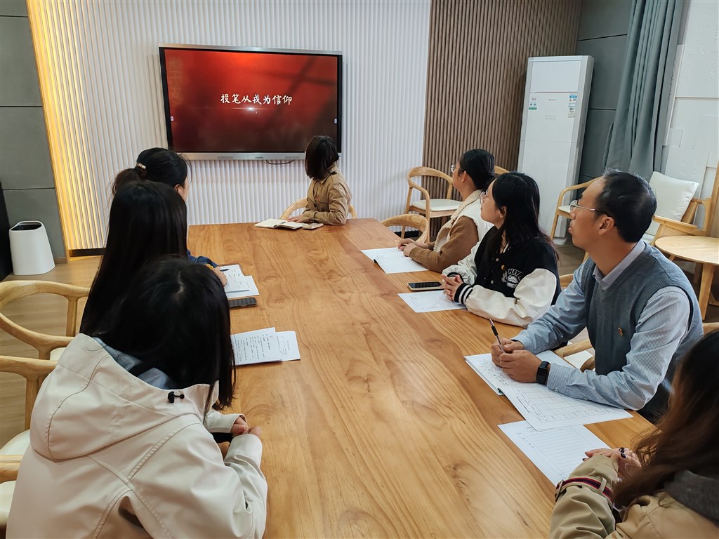 随后,全体党员观看党员教育系列片《八秩荣光——江苏抗日根据地共产党人》之《投笔从戎为信仰》。影片生动再现了江苏抗日根据地知识分子党员放弃安逸生活,投身革命洪流的英雄事迹,展现了共产党人坚定的理想信念与家国担当。观影结束后,党员们深受触动,纷纷表示要以革命先辈为榜样,立足教育岗位,坚守育人初心,将红色基因融入立德树人实践,以实际行动践行共产党员的使命担当。