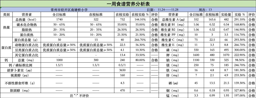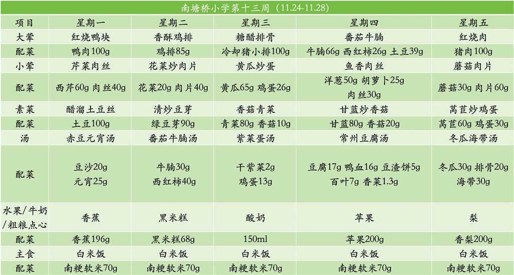 南塘桥小学2025-2026第一学期第十三周菜谱