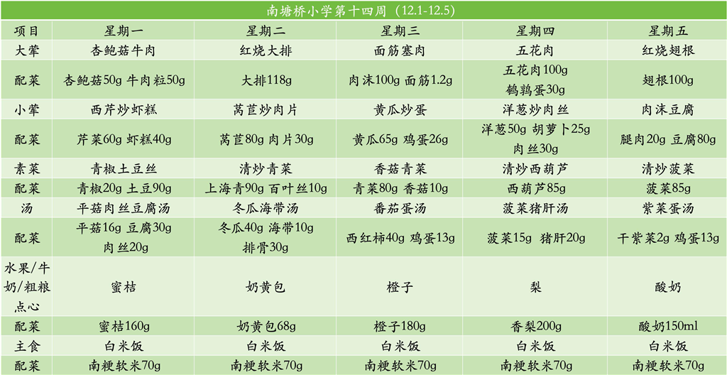 南塘桥小学2025-2026第一学期第十四周菜谱