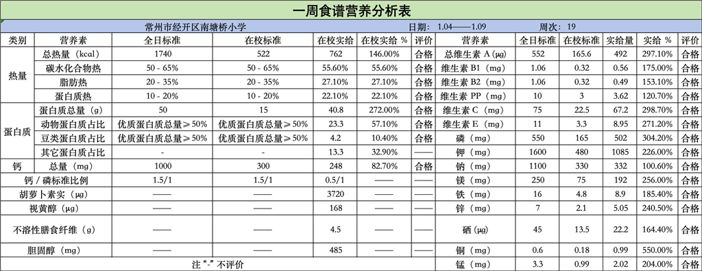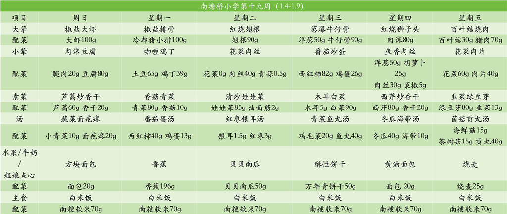 南塘桥小学2025-2026第一学期第十九周菜谱