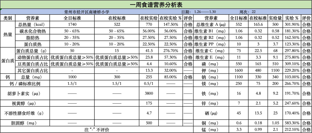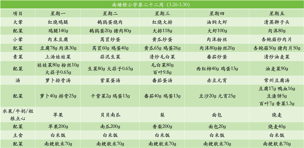 南塘桥小学2025-2026第一学期第二十二周菜谱