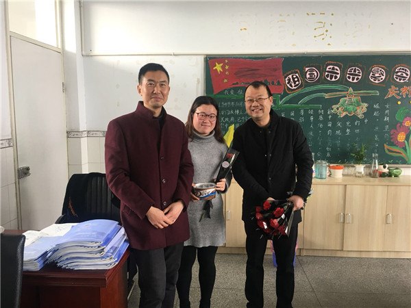 第二节课一下课,殷黎明副校长和工会主席周建明副校长以及总务处的两位男教师就给学校所有女教职工带来了惊喜。他们首先走进了学校食堂的操作间,给正在忙碌着的食堂工作人员送上了节日的礼物和温馨的祝福,接着他们又走进了每一个教师办公室,给女教师们都送上一份礼物,周校长手捧康乃馨,亲自把每一束康乃馨送到女教师手里,殷校长立刻送上工会的礼物——一盒德芙巧克力,虽然只是一些小小的礼物,但每一位女教师的脸上都洋溢着喜悦的笑容,她们的笑容也感染了我们的男教师,在这齐乐融融的美好氛围中结束了此次关爱女教工的妇女节活动。